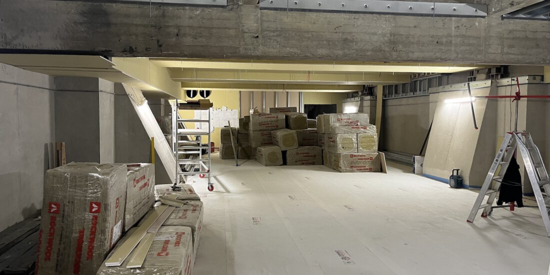Langzaam maar gestaag vordert de uitvoering van Metro Walhalla. Nadat eerder de betonnen kelderbak was opgeleverd, wordt er momenteel hard gewerkt aan de afbouw. De nieuwe ondergrondse zaal onder de bestaande kantine wordt als een (halve) doos-in-doos uitgevoerd, wat toch