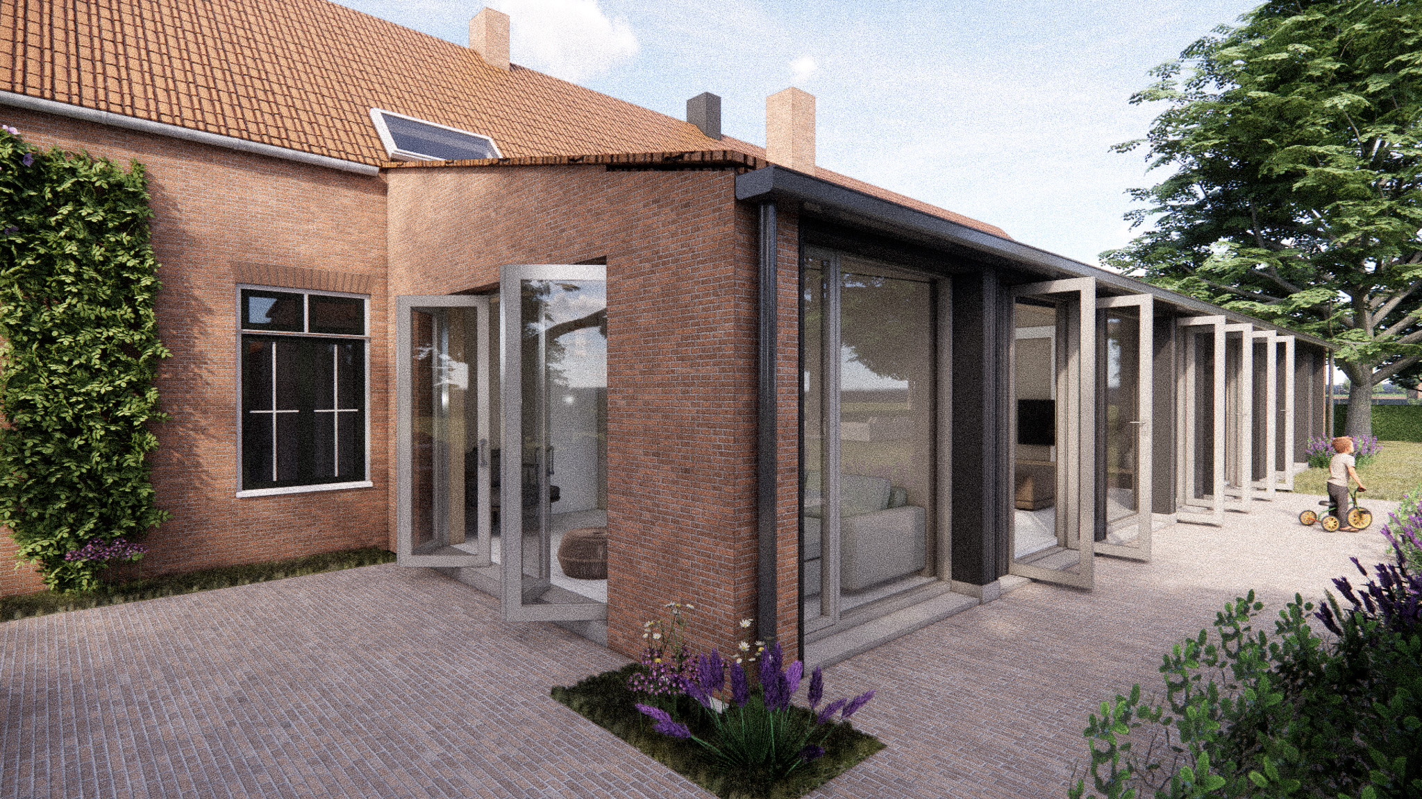 Robert & Marjolein kochten een grote woonboerderij uit 1956, op een prachtig plekje met vrij uitzicht nabij Middelburg. Het gebouw ademt sfeer en had al veel mooie elementen, maar was slecht geïsoleerd en moest nodig gemoderniseerd worden. Het uitgangspunt hierbij was wel dat het verleden niet “uitgewist” hoeft te worden.