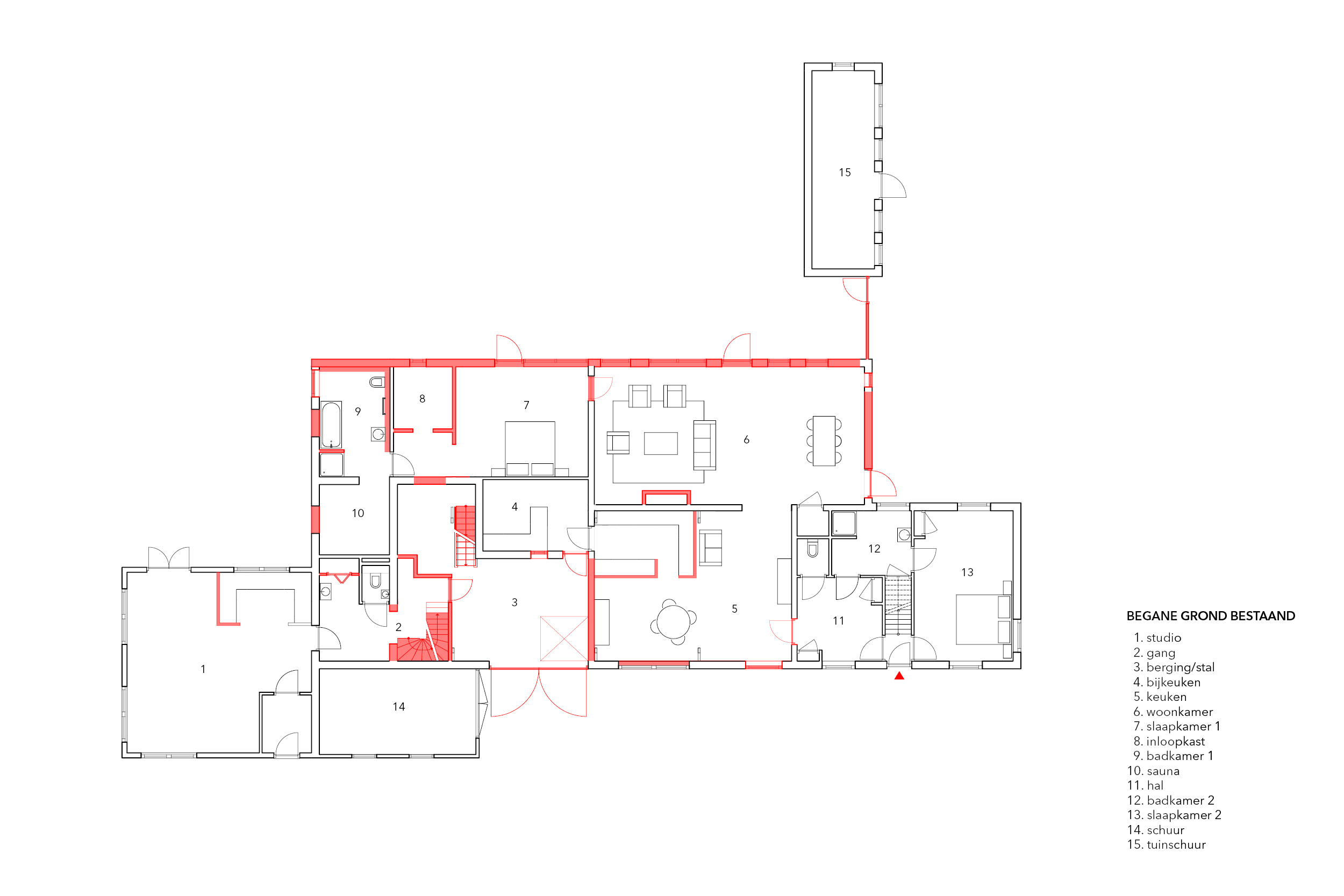 Het gedeelte van de woning dat de meeste prioriteit had in de verbouwing was de linker helft van de oorspronkelijke stal. Dit gedeelte van het huis was onlogisch en hokkerig ingedeeld. Ter plaatste van de oude staldeuren zat een ongeïsoleerde schuur, in open verbinding met de grote zolder.